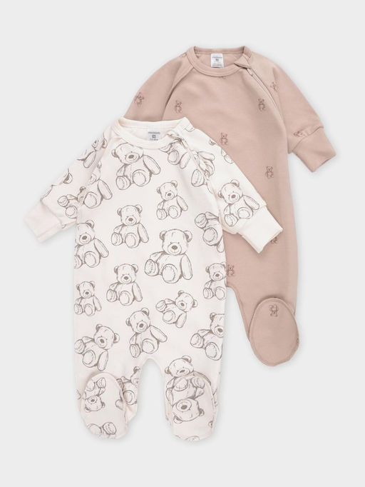 Комбинезоны для новорождённых из мягкого эластичного трикотажа интерлок, произведённого из натурального хлопка. В упаковке 2 штуки. Застёгиваются сбоку на молнию с мягкой защитой шеи и подбородка. Длинные рукава-реглан оканчиваются манжетами. Оригинальная набивка выполнена из стойких гипоаллергенных текстильных красителей. Все трикотажные полотна производятся в соответствии с нормами швейцарского сертификата ЭкоТекс.. Состав: 100% хлопок