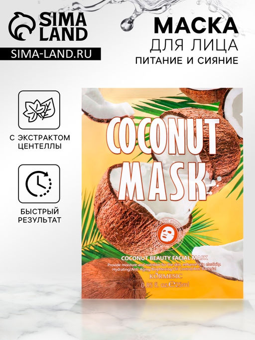 Описание товара Кокос содержит насыщенные жирные масла, витамины В1, В2, С, Е, железо, магний, калий, кальций, фосфор, цинк. В его состав входят аминокислоты, фруктоза, глюкоза и сахарозы. Маска с экстрактом кокоса увлажняет и питает кожу. Экстракт плодов кокоса повышает упругость кожи, смягчает и тонизирует, а также оказывает антиоксидантное и противовоспалительное действие.