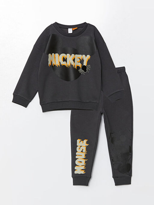 Mickey Mouse Bask?l? Erkek ?ocuk Sweatshirt ve E?ofman Alt? 2li