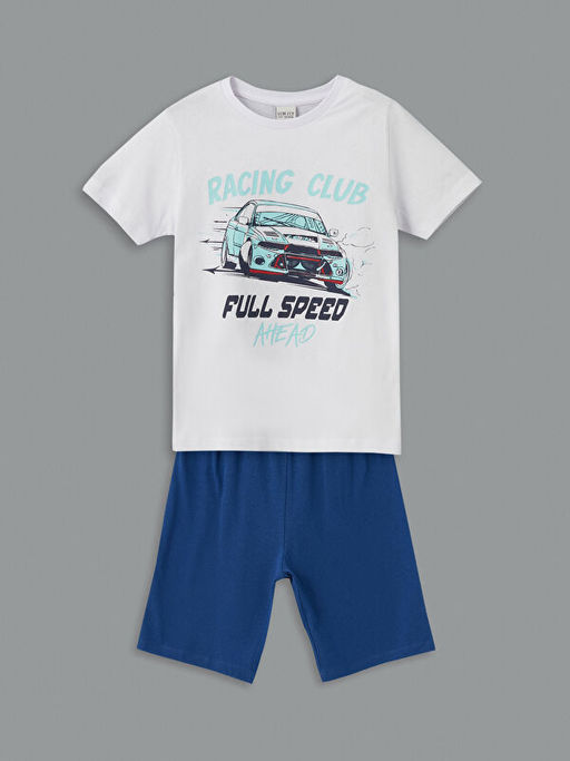 Bisiklet Yaka Erkek ?ocuk ?ortlu Pijama Tak?m?