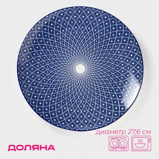 Серия посуды Доляна «Бодом» создана для идеальной сервировки вашего стола. Глубокий и насыщенный синий цвет в сочетании с белым орнаментом придают изделиям особенный вид. Посуда изготовлена из прочной керамики, устойчива к повреждениям и перепадам температур.Изделия отличаются высоким качеством исполнения и при бережном использовании прослужат вам долгие годы.Можно использовать в посудомоечной машине и в СВЧ-печи. Набор: Нет. Форма: Круглая. Диаметр, см: 26.7. Тематика: Узоры. Тематика: Орнамент. Рисунок: Да. Крышка: Нет. Вид тарелки: Плоская. Можно мыть в посудомоечной машине: Да. Можно использовать в СВЧ-печи: Да. Текстура: Гладкая. Особенности: Без особенностей. Матовая поверхность: Нет. Для горячего: Да. Бесплатная доставка: Да. Размеры товара: 26.7/2.9/26.7. Примечание: Оттенок данного товара может незначительно отличаться от фото/видеоизображения (в зависимости от настроек яркости вашего экрана)..