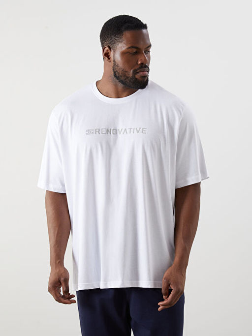 B?y?k Beden Bisiklet Yaka Bask?l? Penye Erkek Ti??rt