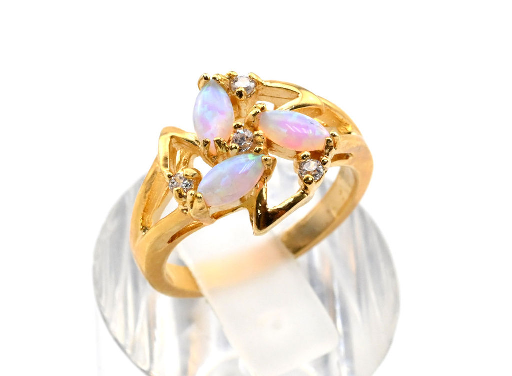 Кольцо с японским опалом, "Звезда", украшение из ювелирного сплава с нанесённым гальваническим методом золотым покрытием толщиной 1 микрон со вставками из японского опала­