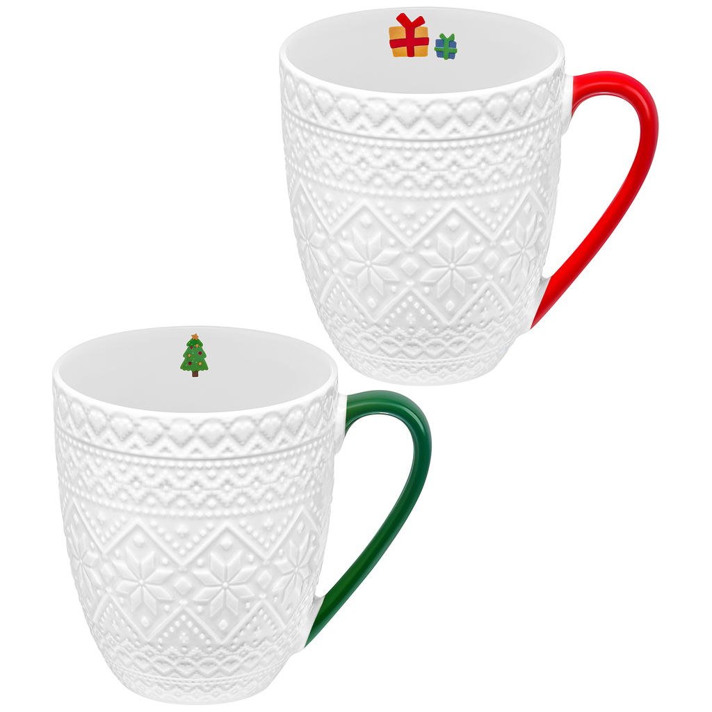 • Набор кружек 2 пр. 410 мл 12*9*11 см "Праздничный орнамент", с цветной ручкой, фарфор