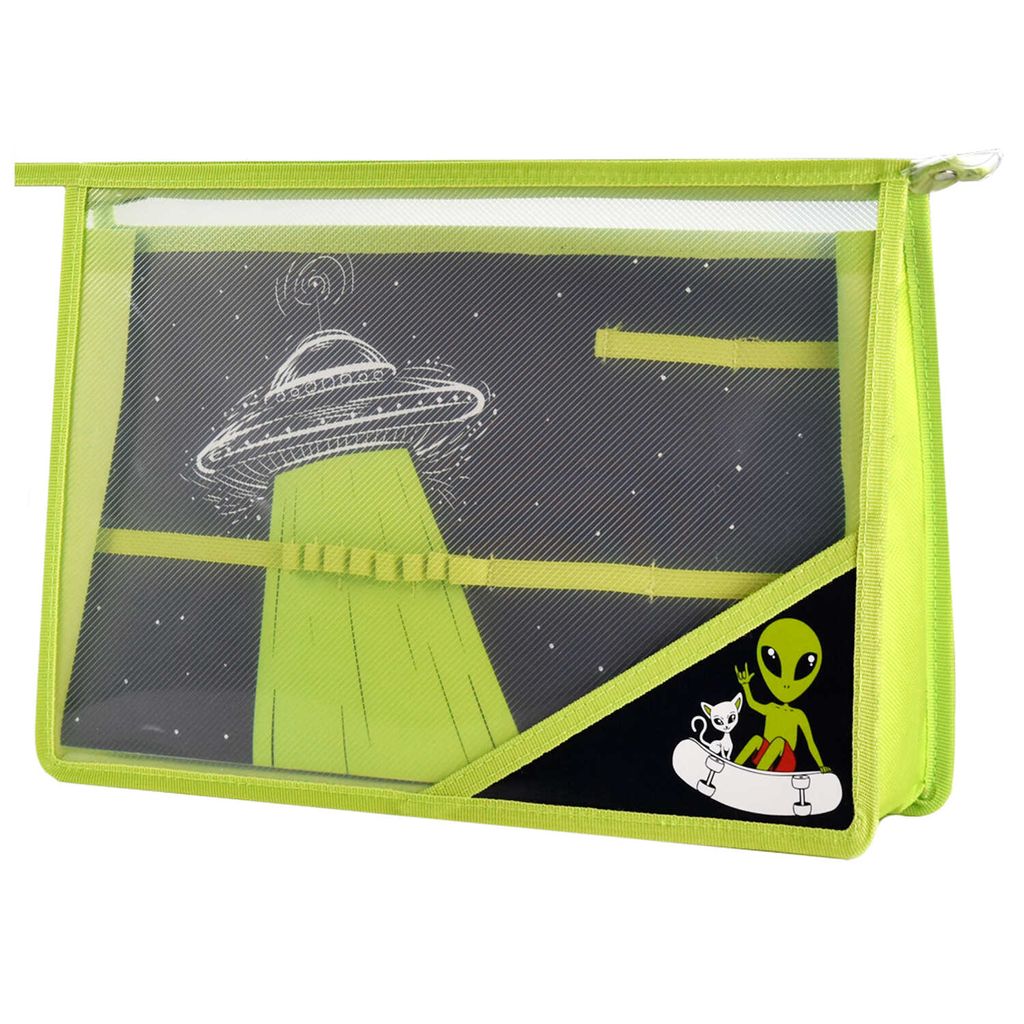 Папка для уроков труда пластиковая арт. 59598/ 12 НЛО (полипропилен, формат А4, 33х23 см, 1 отделение (-я), молния, внутренний разделитель с эластичными держателями для канцелярских принадлежностей, УФ-печать, полноцветный дизайн)