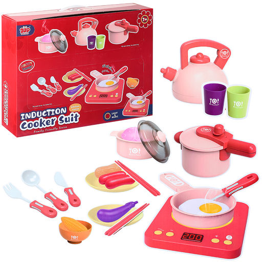 - набор посуды (миска, 2 тарелки, 2 стаканчика, 4 палочки, сковорода, кастрюля с крышкой, чайник, пароварка, нож, лопатка, вилка, поварёшка),