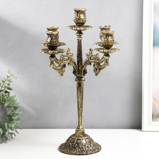 • Металлический подсвечник на 5 свечей «Канделябр королевский», чугун, золотая патина 43×29×29 см
