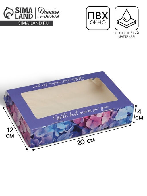 • Цена за 10 шт. Кондитерская упаковка, коробка с ламинацией «Гортензия», 20 х 12 х 4 см