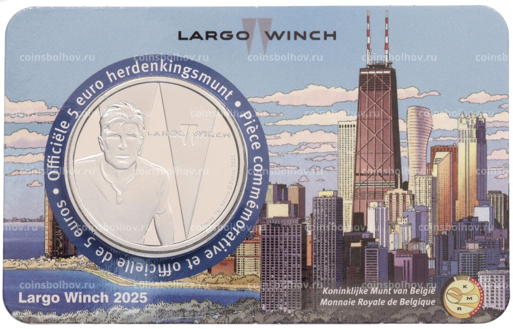 • Монета 5 евро 2025 года Бельгия Ларго Винч (в блистере)