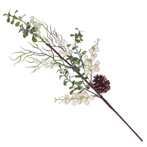 Эта новогодняя ветка настоящая находка для праздничного декора. Станет отличным самостоятельным украшением, а также прекрасно впишется в любую композицию.