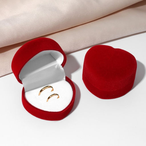 • Футляр под 2 кольца Сердце малое, серёжки, бархатный, 5?5 см, бордовый