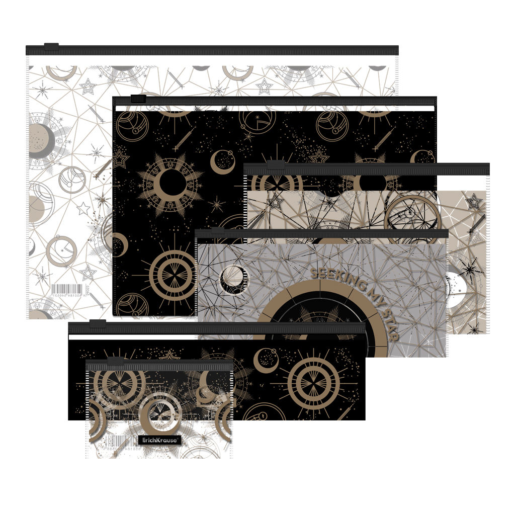 АКЦИЯ СТОК Цена за 1 шт. Набор из 6 zip-пакетов пластиковых ErichKrause® Magic Sky, ассорти (A4, B5, C6, Travel, 230x70mm, Card Size)