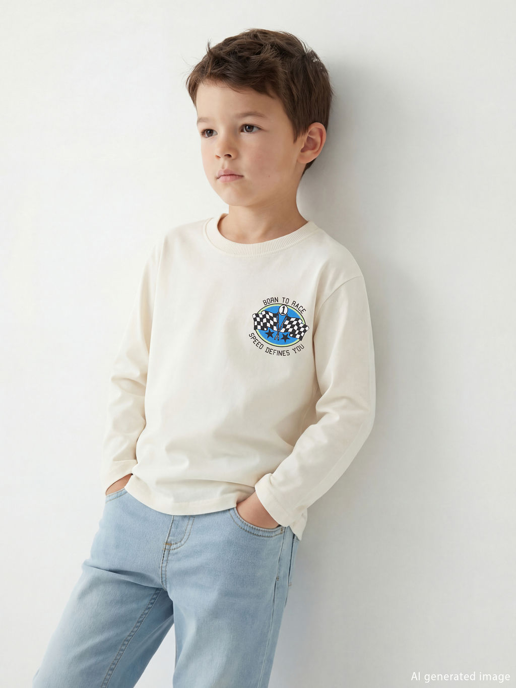 Bask?l? Uzun Kollu Erkek ?ocuk Ti??rt