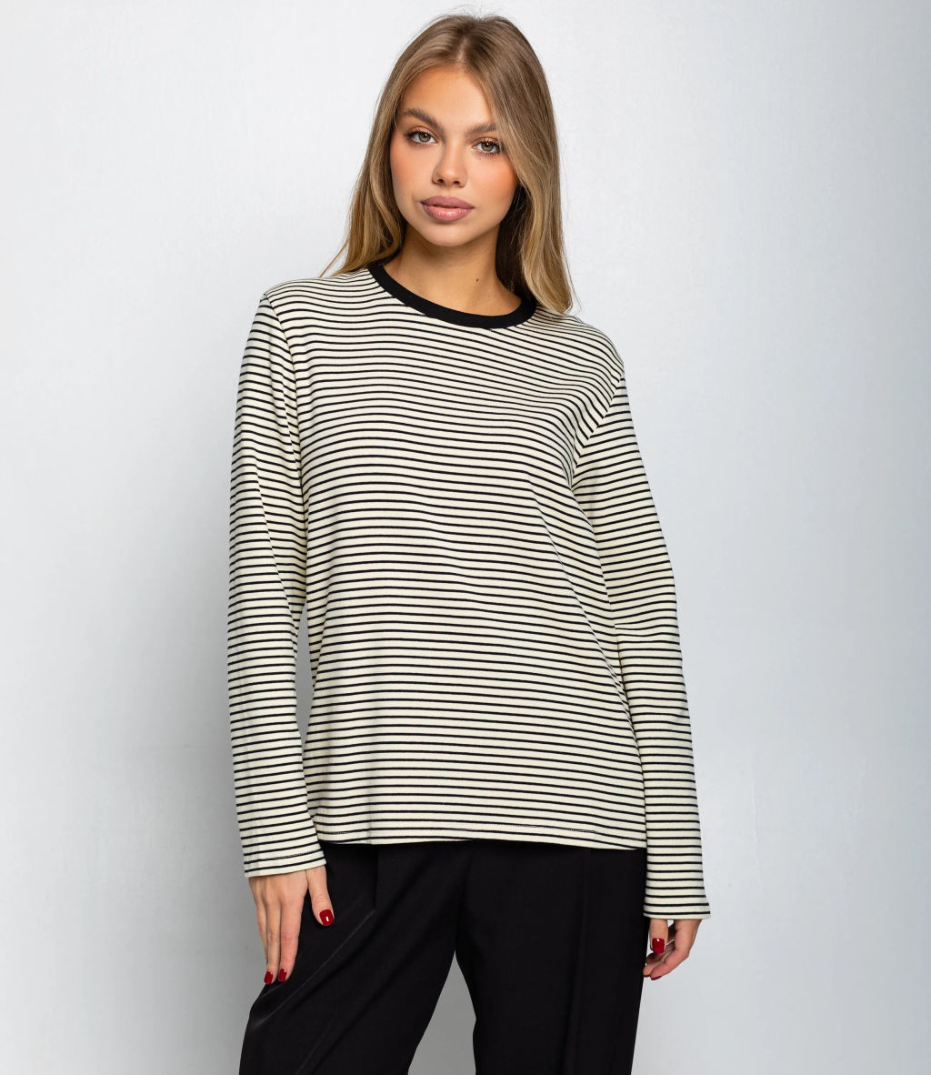 Лонгслив это одежда, которая подчеркивает уникальность каждой женщины. Приталенный лонгслив средней длины. Лонгслив классического прямого кроя с округлым вырезом горловины и втачными длинными рукавами, выполнен из мягкого трикотажного полотна средней плотности, прилегание свободное, не утягивает фигуру, плечевые швы расположены по стандартной линии, манжеты простые, без резинки, низ изделия прямой, обработан аккуратным подгибом, внутренняя отделка горловины усилена тонкой бейкой для сохранения формы, поверхность украшена тонкой горизонтальной полосатой структурой, швы ровные и незаметные, посадка универсальная для многослойных образов, стиль повседневный и минималистичный, подходит для сочетания с джинсами и классическими брюками. Для изготовления использована 65% хлопок, 30% полиэстер и 5% эластан, которая характеризуется отличным качеством. Даже после многих стирок лонгслив не потеряет изначальной привлекательности. Даже после многих стирок лонгслив не потеряет изначальной привлекательности. Вы обязательно будете её носить с большим удовольствием. Обратите внимание на цвет. Он является насыщенным и полностью соответствует фотографии на сайте. Чтобы вы были уверены в размере, мы предоставили на сайте таблицу. Воспользовавшись ею, вы сможете сами сделать мерки и убедиться. Установленная нами цена является приемлемой. Не откажите себе в удовольствии быть элегантной и стильной! Рост 168, 89-63-90. -- Характеристики -- Цвет: черный, молочный Пол: Женский Страна производитель: Китай Сезон: Демисезон Материал: Хлопок, Эластан, Полиэстер