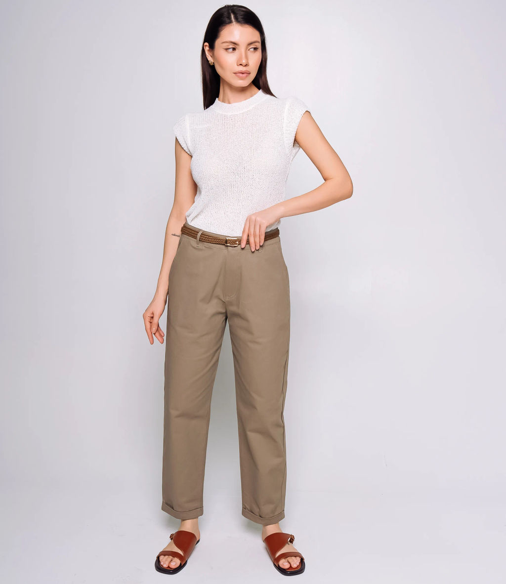 Брюки это важная часть гардероба, которая подчеркивает утонченность и профессионализм каждой женщины. Брюки выполнены из плотного гладкого материала средней плотности с лёгким структурированным блеском, имеют прямой силуэт с высокой талией и классической посадкой, передняя часть оформлена плоской ширинкой с центральным швом и скрытой застёжкой, талия оснащена шлевками для ремня и тонким декоративным ремнём с металлической пряжкой. Для пошива использована ткань: 97% хлопок, 3% эластан. Материал средней плотности хорошо держит форму, обладает приятной на ощупь структурой и обеспечивает комфорт при носке. Даже после многократных стирок изделие не утратит первоначальной аккуратности и цвета, что важно для поддержания высокого уровня продаж в рознице. Обратите внимание на насыщенные оттенки: цвет соответствует фотографии на сайте. Модель имеет два боковых кармана и декоративные швы, подчеркивающие структуру изделия. Для уверенности в размере на странице представлена таблица, с помощью которой можно самостоятельно снять мерки и подобрать нужный размер. Мы предлагаем выгодные оптовые условия, гибкую ценовую политику и стабильные поставки для ваших магазинов. Цена установлена адекватная, что позволит вам формировать привлекательную наценку и обеспечивать высокую оборотность. Подарите своим клиенткам изделие, которое сочетает в себе стиль, комфорт и надежное качество. -- Характеристики -- Цвет: капучино Пол: Женский Страна производитель: Китай Сезон: Демисезон Материал: Хлопок, Эластан