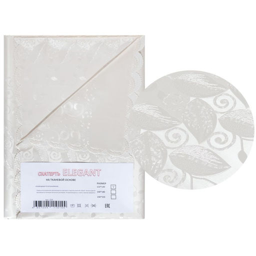 Cкатерть ELEGANT скатерть изготовлена из высококачественного поливинилхлорида, легка в обращении и не требует специального ухода. Достаточно протереть ее влажной тряпкой и она снова будет выглядеть как новая. Ажурное кружевное тиснение по канве. Характеристики: длина 140 см, ширина 110 см.