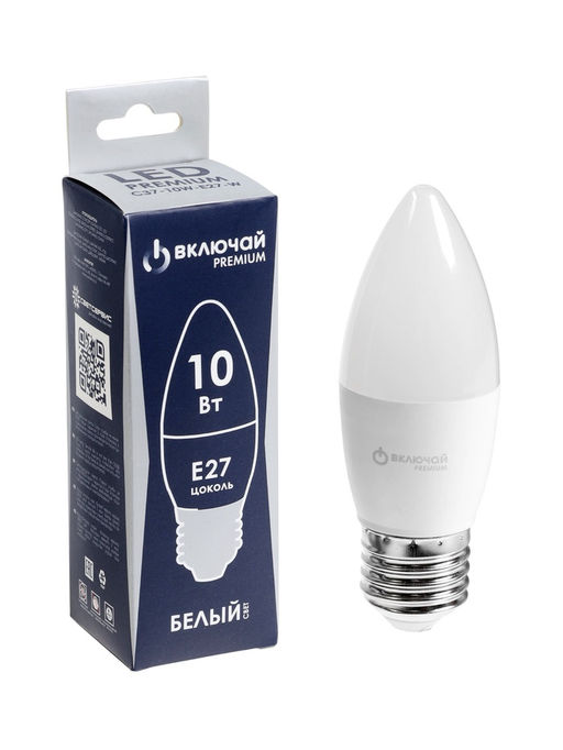 Цена за 2 шт. Лампа светодиодная Включай, С37, 10 Вт, E27, 950 Лм, 4000K, IP20, свечение нейтральное белое, матово