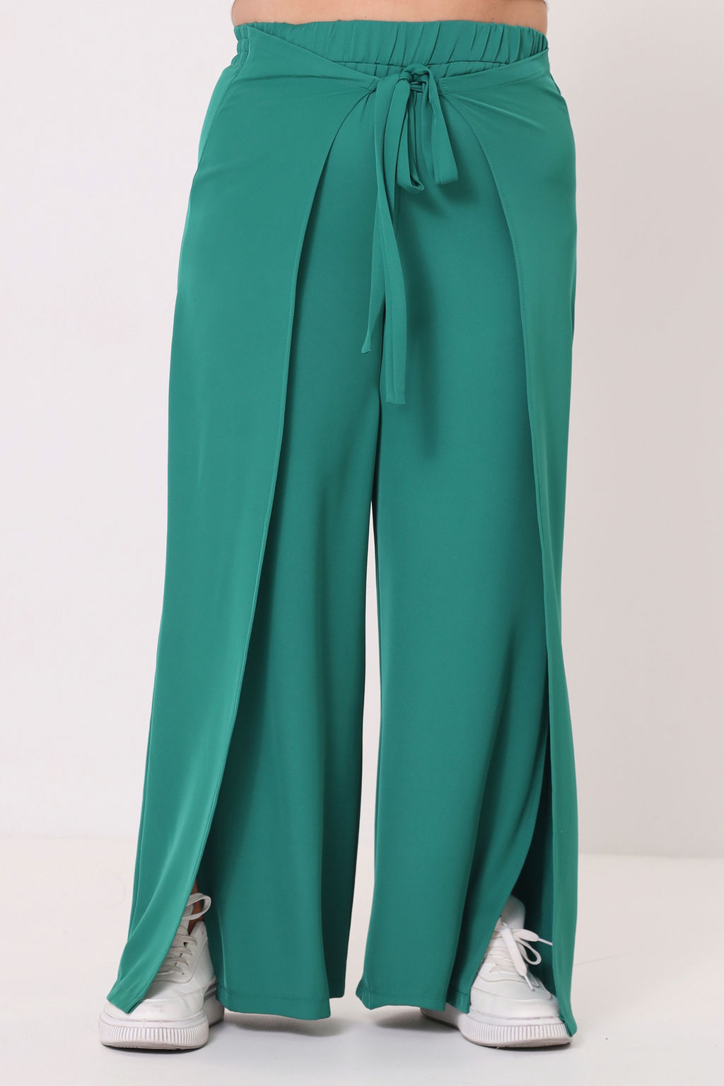 Брюки на запАх с завязкой спереди зеленые