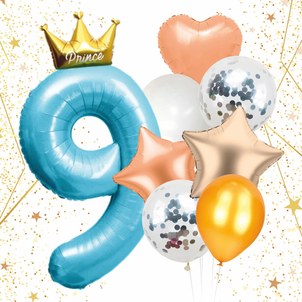 Набор шаров 8 шт "9 - Prince", голубой (цирфа + 7 шаров)­
