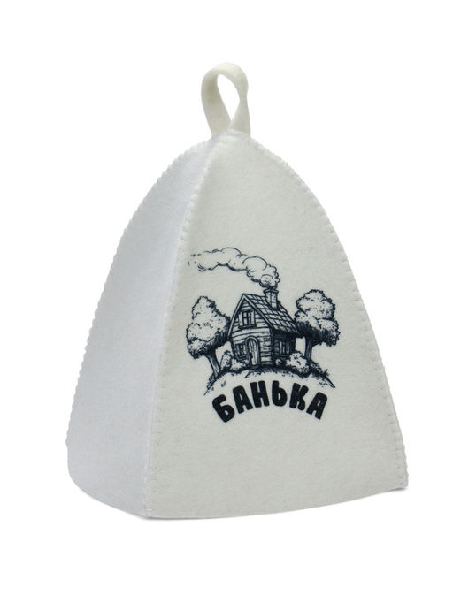 Шапка банная с принтом "Банька", войлок белый
