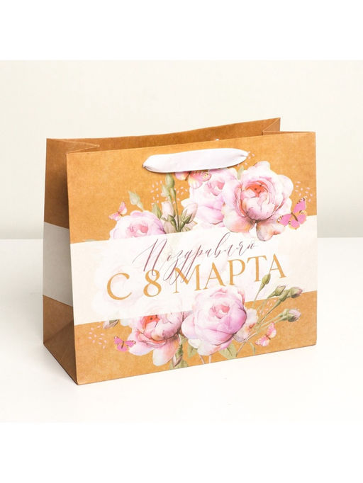 Пакет подарочный крафтовый, упаковка, С 8 Марта, ML 27?23?11.5 см
