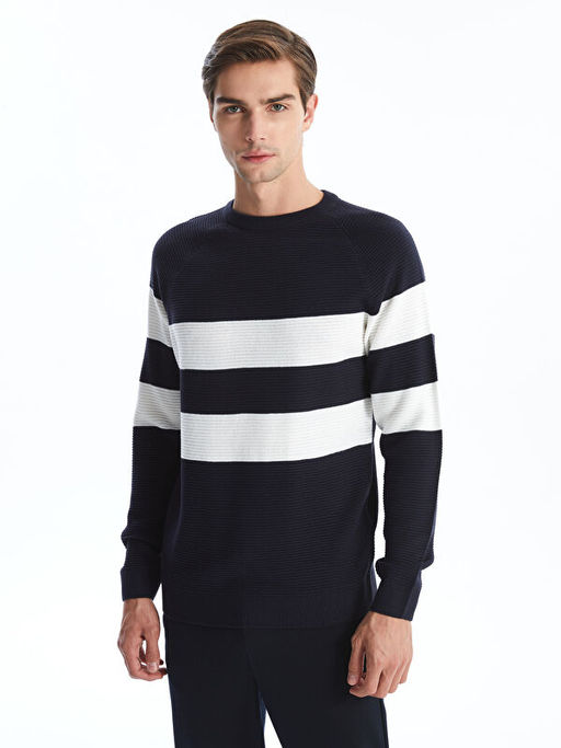 Bisiklet Yaka Uzun Kollu ?izgili Erkek Triko Kazak