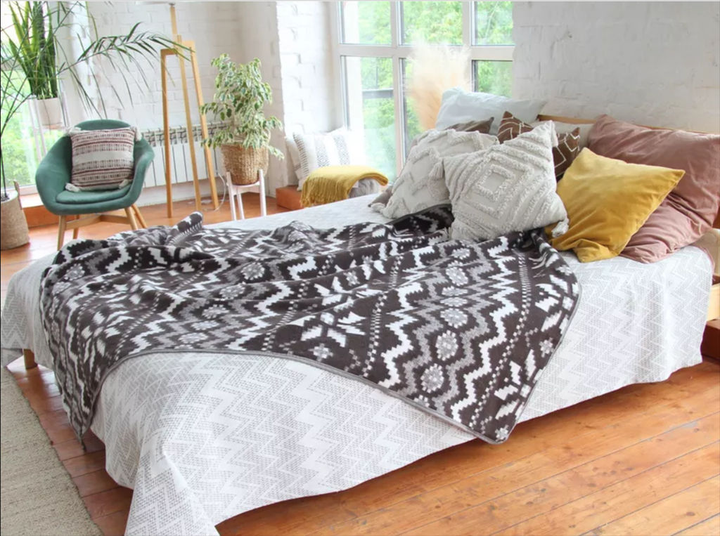 • Одеяло байковое в канте 140*200 жаккард "Снежинка" цв. корич. (ВВТ)