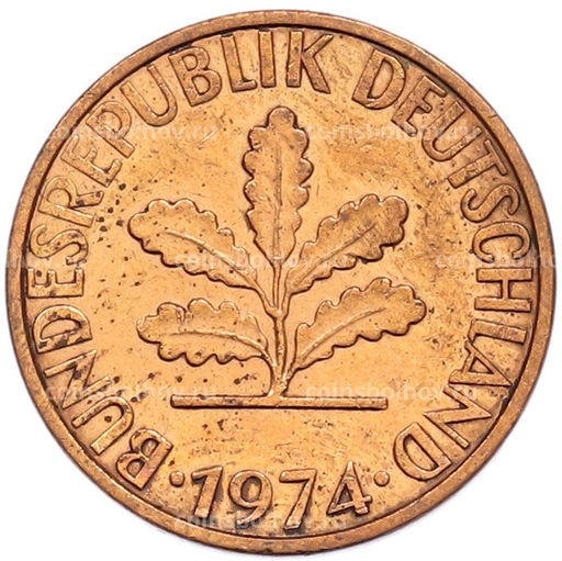Монета 2 пфеннига 1974 года J Западная Германия (ФРГ)