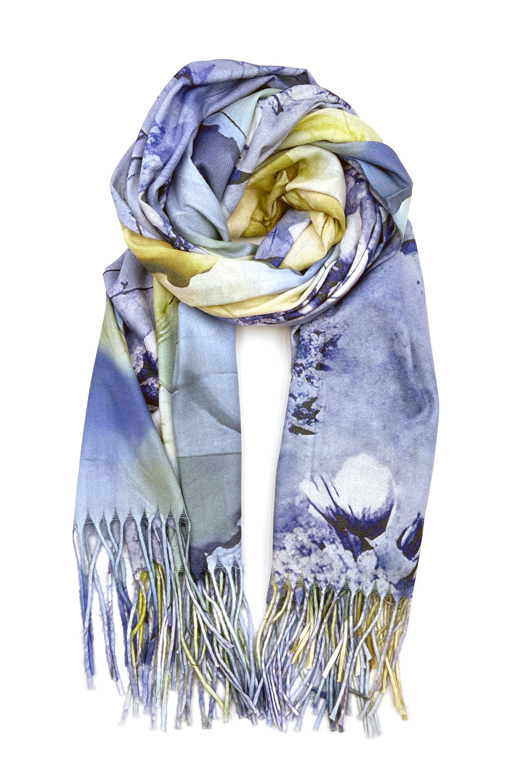Шарф кашемировый с цветочным принтом сине-желтый­