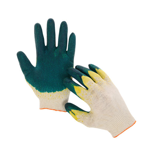 Цена за 5 шт. Перчатки садовые, хб, вязка 13 класс, размер 9, двойной латексный облив, зелёные