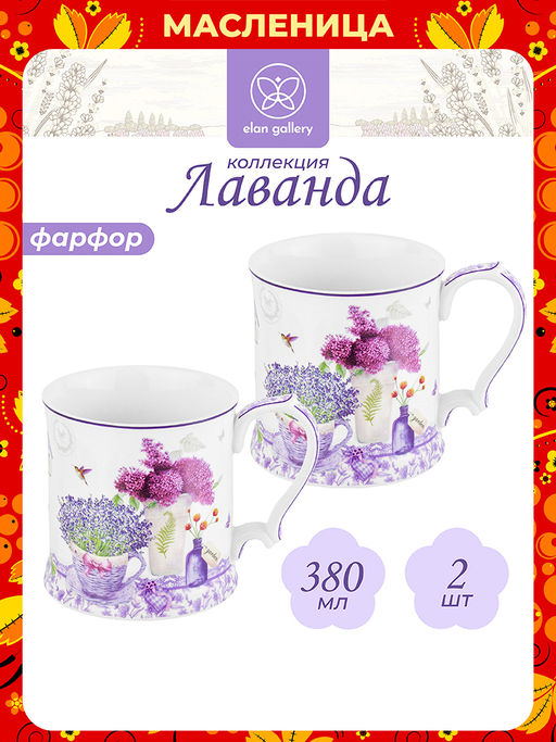Набор 2 кружек Elan Gallery "Лаванда" выполнен из фарфора нового поколения new bone china. New bone china сочетает в себе изящность и высокую прочность. От других видов костяного фарфора материал отличается большей экологичностью в производстве. Размер каждого изделия 12,3х9х9 см, объём 380 мл. Поможет отпраздновать Широкую Масленицу со вкусом! Масленица это чудесный повод собраться за праздничным столом и насладиться тёплой атмосферой и традиционной русской кухней. В ассортименте бренда Elan Gallery вы найдёте предметы декора и красивую посуду для приготовления и сервировки масленичных блюд. Пусть Масленичная неделя принесет вам радость и множество вкусных моментов! Серия "Лаванда" украшена нежным принтом на тему Прованса французской провинции, которая славится своими лавандовыми полями и красивыми пейзажами. Изображение пышных букетов лаванды и гортензии позволит окунуться в атмосферу тепла, гармонии и южного солнца, не покидая вашей кухни или столовой! В коллекции вы найдёте любые принадлежности для эстетичной сервировки. Каждая кружечка подходит ценителям чая и кофе, которые любят пить из красивой и необычной посуды. Это отличный вариант для того, чтобы согреться горячим какао зимой и освежиться прохладным лимонадом летом. Фигурный бокал с ручкой украсит ваш стол своим стильным дизайном как на праздник, так и в будни. Пейте молоко, кефир и наслаждайтесь красивой картинкой! В офисе станет незаменимым предметом для чаепития или перерыва на капучино и латте. В отличие от керамики фарфор не впитывает цвет и запах напитка, легко отмывается. Не рекомендуется применять абразивные моющие средства. Можно использовать в микроволновой печи и посудомоечной машине. Поставляется в красочной картонной коробке. Станет чудесным подарком на праздник. Благодаря стильной коробочке не понадобится подарочная упаковка! Серия "Лаванда" позволит собрать чайный или кофейный сервиз в едином стиле!