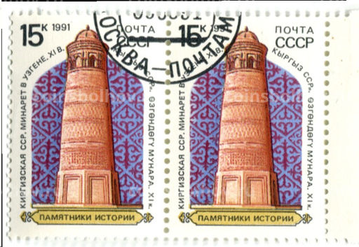 Марка Минарет в Узгене XI век Киргизская ССР 1990 год (блок из 2 марок)