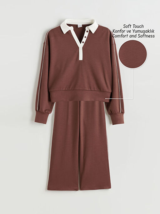 Polo Yaka K?z ?ocuk Soft Touch Sweatshirt ve E?ofman Alt