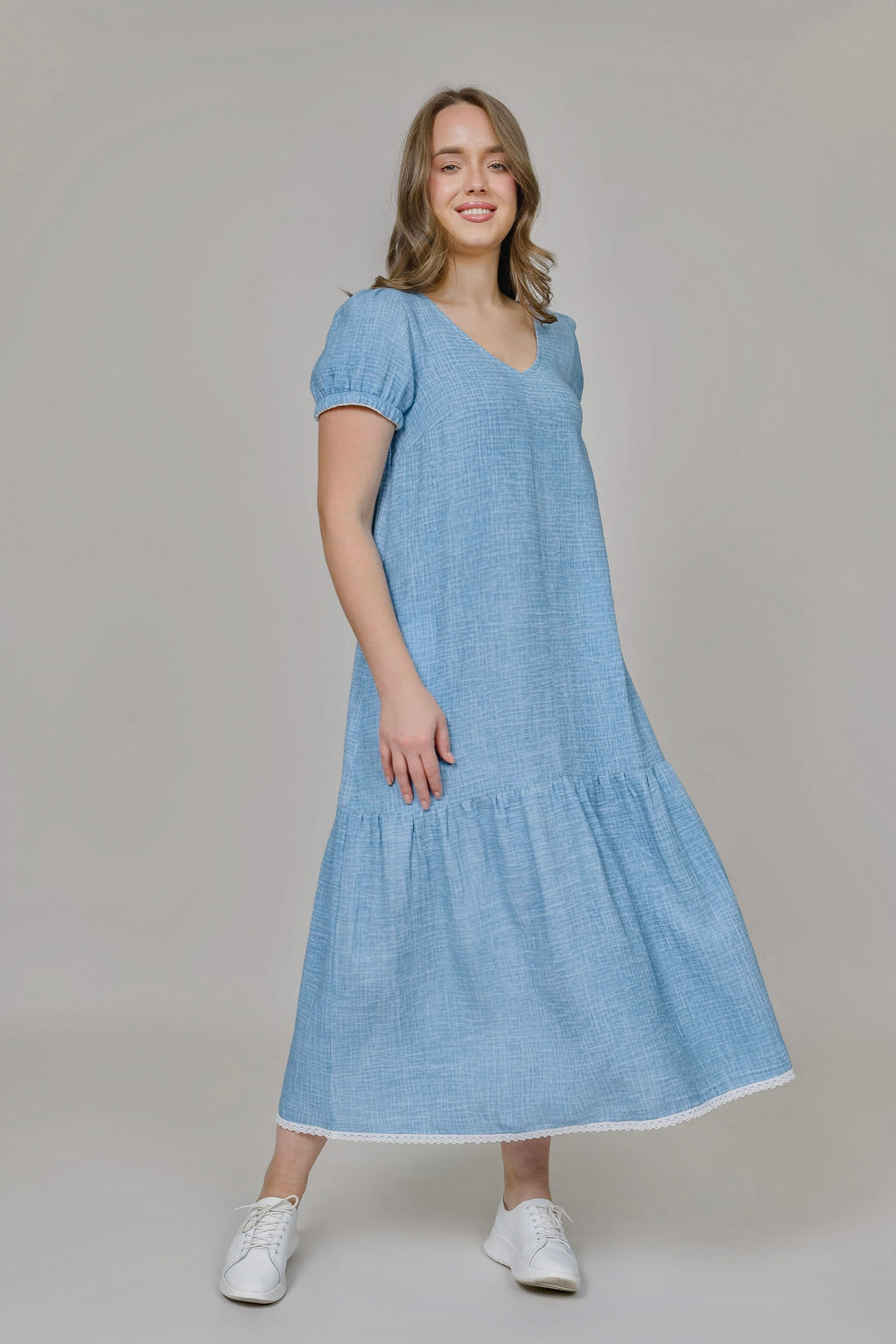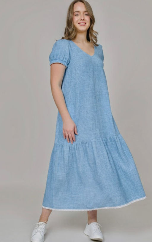 Летне женское платьес коротким рукавом из вареного муслина (100% хлопок). Силуэт свободный. Умеренно пышный рукав закрывает верхнюю часть руки и создает максмальное удобство при динамике. Имеются два боковых кармана. Конструкция разработана с учетом отличной посадки на фигурах любой полноты, имеется нагрудная вытачка. Свободное облегание, небрежная, но очень стильная мешковатость придает платью шик и комфорт. Свойства муслина, благодаря мягкости ткани, обеспечивают отличную воздухопроницаемость и исключают появление аллергических реакций. Кроме того, одежда из натуральных волокон быстро впитывает и испаряет влагу, не электризуется, не прилипает к телу и поддерживает ощущение свежести даже в пик солнечной активности