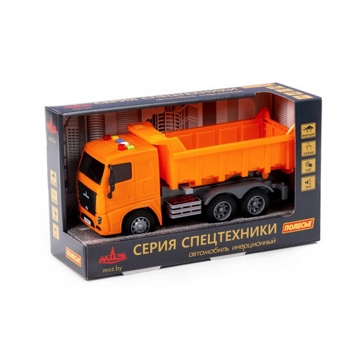 • Автомобиль-самосвал "MАЗ" инерционный, оранжевый, свет/звук (67262) в коробке 32*11,5*18,5см, Полесье