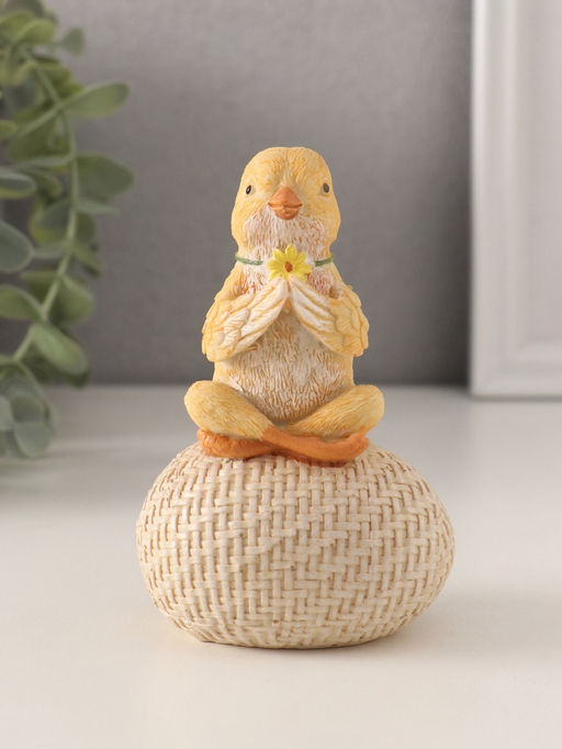 Милый цыплёнок на яйце: дзен Познакомьтесь с очаровательной фигуркой, созданной для тех, кто ценит радость и позитив в своем доме Цыплёнок на яйце: дзен. Эта прелестная композиция из полистоуна размером 7.5x5.5x11.5 см станет прекрасным дополнением к вашему интерьеру и подарит атмосферу счастья и беззаботности. Очаровательный сюжет: фигурка изображает милого цыплёнка, сидящего на большом яйце в окружении цветов. Эта трогательная сцена передает дух радости и беззаботности, идеально подходящий для детской комнаты или гостиной. Разноцветный дизайн: фигурка выполнена в бежевом и жёлтом варианте, что делает её настоящим центром внимания. Каждый элемент тщательно проработан, чтобы передать дух радости и позитива. Идеальный размер: с высотой всего 11,5 см фигурка идеально впишется в любой интерьер, не занимая много места. Она станет прекрасным дополнением к вашим полкам, тумбочкам или подоконникам, добавив нотку радости и беззаботности. Идеальный подарок: фигурка Цыплёнок на яйце: дзен станет замечательным подарком для друзей и близких, которые ценят радость и позитив в своем доме. Она также станет замечательным дополнением к вашему личному коллекционированию фигурок, добавив в него нотку беззаботности и радости.
