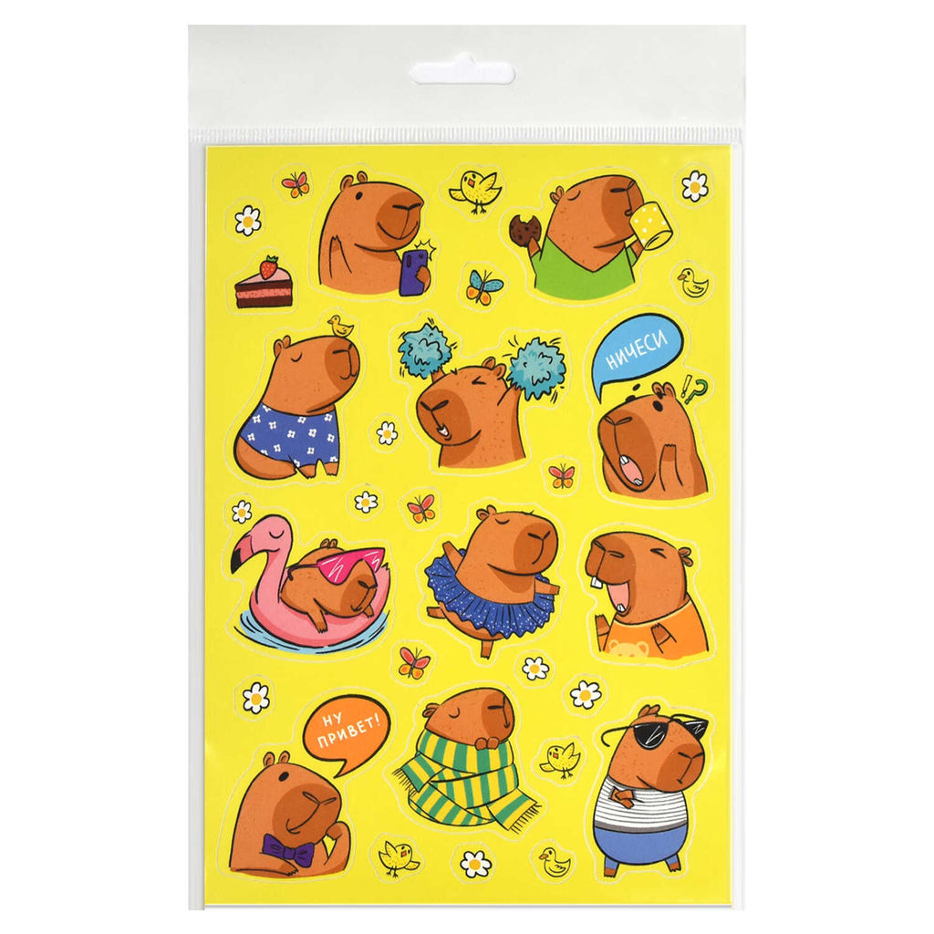 Набор наклеек для детей. Серия "Мемы" арт. 67782 КАПИБАРА /148х210 мм, 1 л., полноцветная печать, обл - мелованная бумага 115 г/м?, полноцветная печать, лист с наклейками/