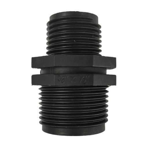 Адаптер-ниппель с наружной резьбой 1/2" - 3/4" выполнен из высококачественного и ударопрочного пластика ABS. Данная модель предназначена для подсоединения к трубам, которые имеют разные резьбы, может служить переходником между магистральной трубой и стационарными оросителями, которые имеют резьбовое подключение (фрегаты, форсунки и т.д.).