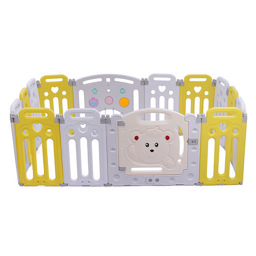На задней стенке манежа установлены вращающиеся элементы и съёмный музыкальный модуль.