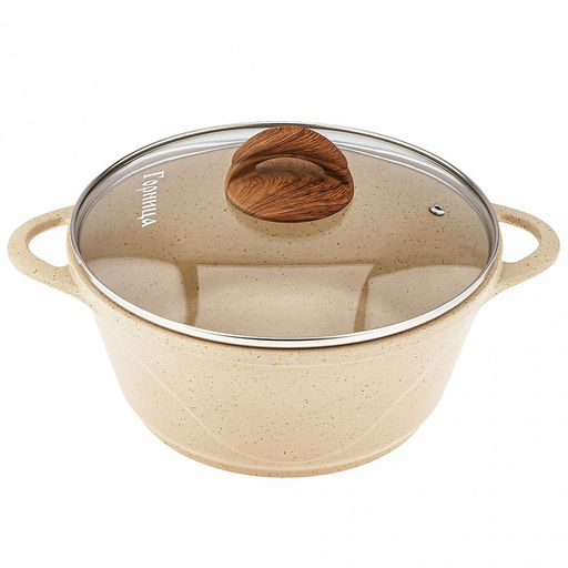 • Кастрюля с антипригарным покрытием 3л, "Гармония", литые ручки, стеклянная крышка с пароотводом, пластмассовая ручка с покрытием "soft-touch" под дерево, "Оникс", подарочная упаковка (Россия)