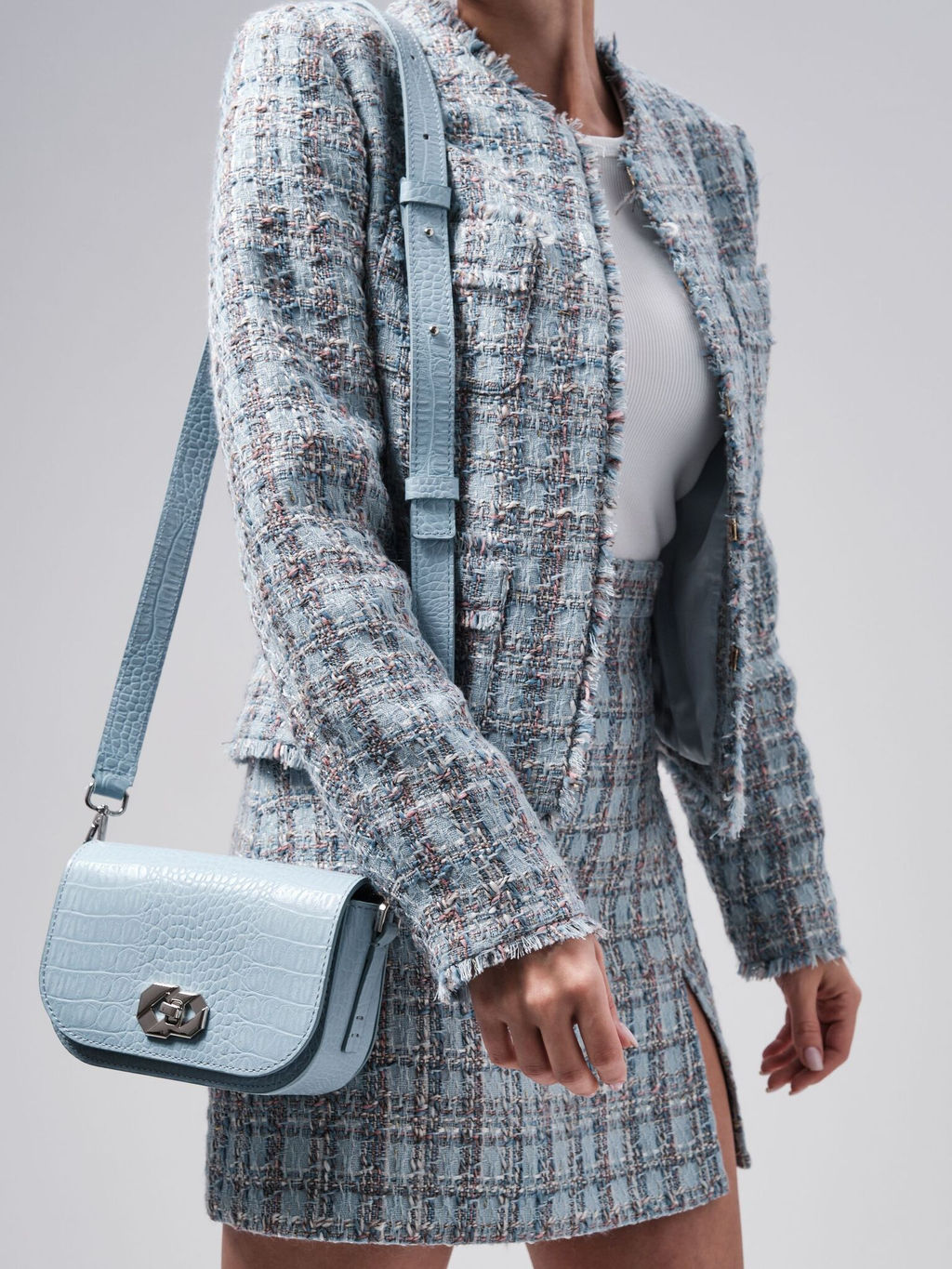 Женская сумка Deboro арт. 30879 в цвете Голубая вода/крок из натуральной кожи высокого качества станет отличным дополнением вашего образа и надежным аксессуаром для повседневной жизни. Изготовленная из натуральной кожи, она обладает высокой прочностью и долговечностью. Эта сумка кросс боди женская натуральная кожа выполнена в аккуратном и элегантном дизайне, что делает её универсальным вариантом как для ежедневного использования, так и для особых случаев. Сумка кросс боди женская натуральная кожа сохраняет форму даже в условиях активной эксплуатации. Сумка Deboro 30879 легко носится через плечо, что обеспечивает комфорт во время ношения. Наличие регулируемого ремня добавляет удобства, позволяя вам подстроить его под свои предпочтения. Водонепроницаемая подкладка сбережет изделие от повреждений. На внутренней стенке клапана отделка из натуральной замши, которая прекрасно оттеняет общий стиль и придает особый шарм. Удобный замок обеспечивает быстрый доступ к нужным вещам. Внутренний кармашек рассчитан на удобное расположение карточек. Использование натуральных материалов гарантирует не только стильный внешний вид, но и функциональность. Эта маленькая сумка женская натуральная кожа позволит вам выглядеть безупречно в любых обстоятельствах. -- Характеристики -- Цвет: голубой Материал: Натуральная кожа Бренд: Deboro Тип: Сумка на плечо Страна-изготовитель: Россия Высота, см: 13 Ширина, см: 19 Глубина, см: 6 Материал подкладки: Хлопок Количество внутренних отделений: 1 Формат А4: не вмещает Высота ручек, см: 55 Длина плечевого ремня, см: 120 Вес товара, г: 410 Ручки: На плечо;Одна лямка;Плечевой ремень Пол: женская коллекция Группа товара: Сумки