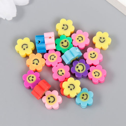 • Цена за 6 шт. Бусины для творчества PVC Цветочек-смайл, цветные, набор 20 шт., 1?1?1 см