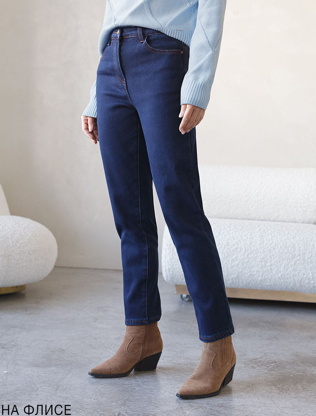Джинсы силуэта mom-fit выполнены из эластичного денима плотностью 17.6 oz. Внутренняя сторона изделия утепленная мягким флисом надежно защищает от холода и ветра. Любимая во всем мире модель с посадкой на талии подчеркивает фигуру и скрывает недостатки. Мастхэв на холодную осень и зиму и самый удобный элемент повседневного гардероба.­