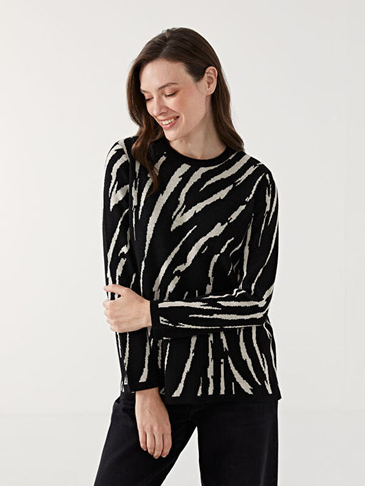 Bisiklet Yaka Desenli Kad?n Triko Kazak