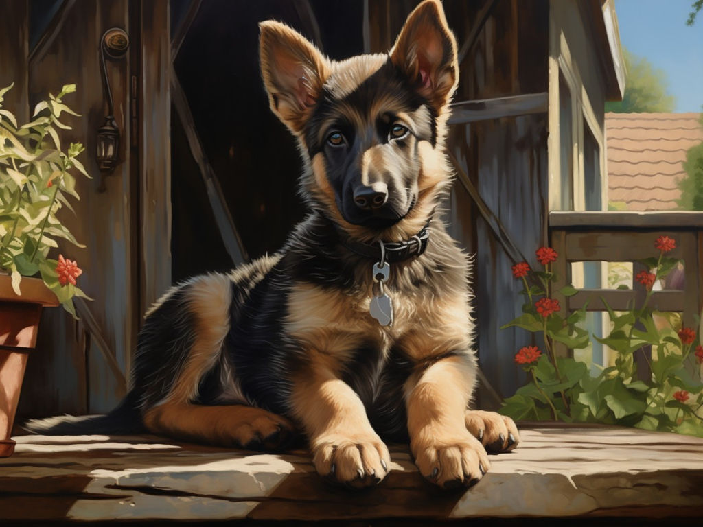 • Вышивка крестиком 40х50см, Щенок овчарки