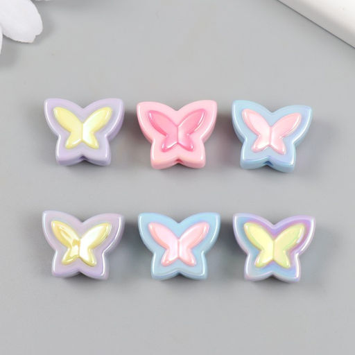 Бусина для творчества пластик, набор 6 шт., Бабочка, цветная с перламутром, 2?1.6 см, МИКС