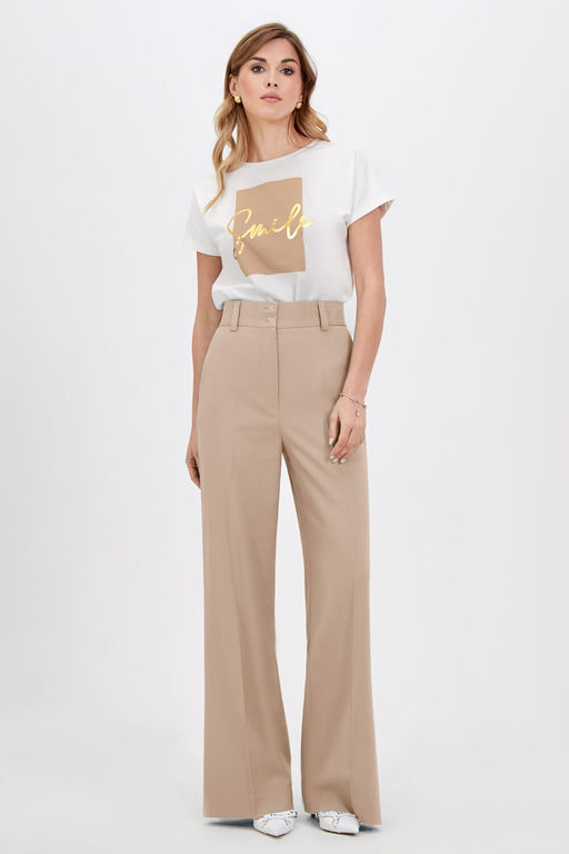 Классический шик! Модные и абсолютно удобные, широкие брюки с косыми боковыми карманами будут сопровождать вас в повседневной жизни. Модная длина создает стильные образы, подходящие как для офиса так и для повседневных мероприятий. Изделие на притачном поясе со шлёвками, собранном на эластичную тесьму по спинке и застёжкой по переду на молнию и петли-пуговицы, выполнили из приятного однотонного материала на основе льна. В пару к брюкам можно подобрать жакет из той же линейки для создания готового комплекта.­