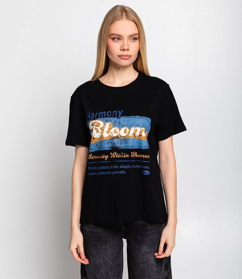 Эта футболка прекрасный выбор для вашего магазина, предлагая стильный и универсальный дизайн, который станет отличным дополнением к гардеробу ваших клиентов. Футболка прямого кроя, классическая модель с короткими рукавами и круглым вырезом. Подходит для создания повседневного образа. На передней части футболки размещен принт с надписями. Он выполнен в нескольких цветах, что добавляет динамики и креативности. Шрифт и дизайн надписи создают ощущение современности и привлекательности. Выполненная из 100% хлопка, футболка обеспечивает отличное качество и приятные тактильные ощущения. Независимо от сезона, она станет любимым элементом в гардеробе ваших клиентов. На странице сайта доступна таблица размеров, что позволит вашим покупателям легко найти подходящий вариант. Установленная цена делает эту футболку доступной для широкой аудитории, что обеспечит вам высокий уровень продаж. Рост модели 173, 84-58-89.­