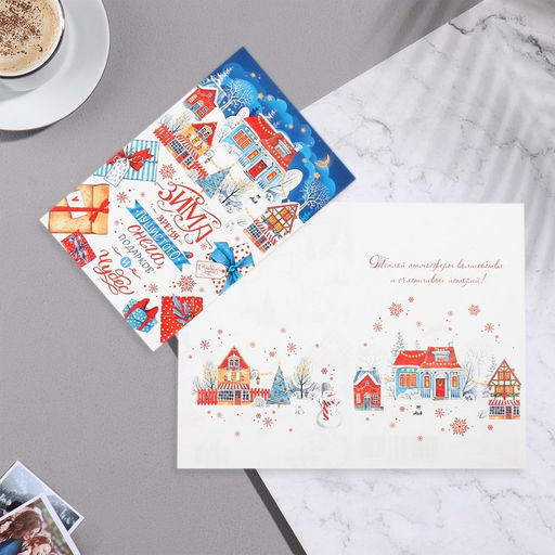 • Цена за 10 шт. Открытка "Зима - время пушистого снега!" глиттер, конгрев, 12,5х19,5 см