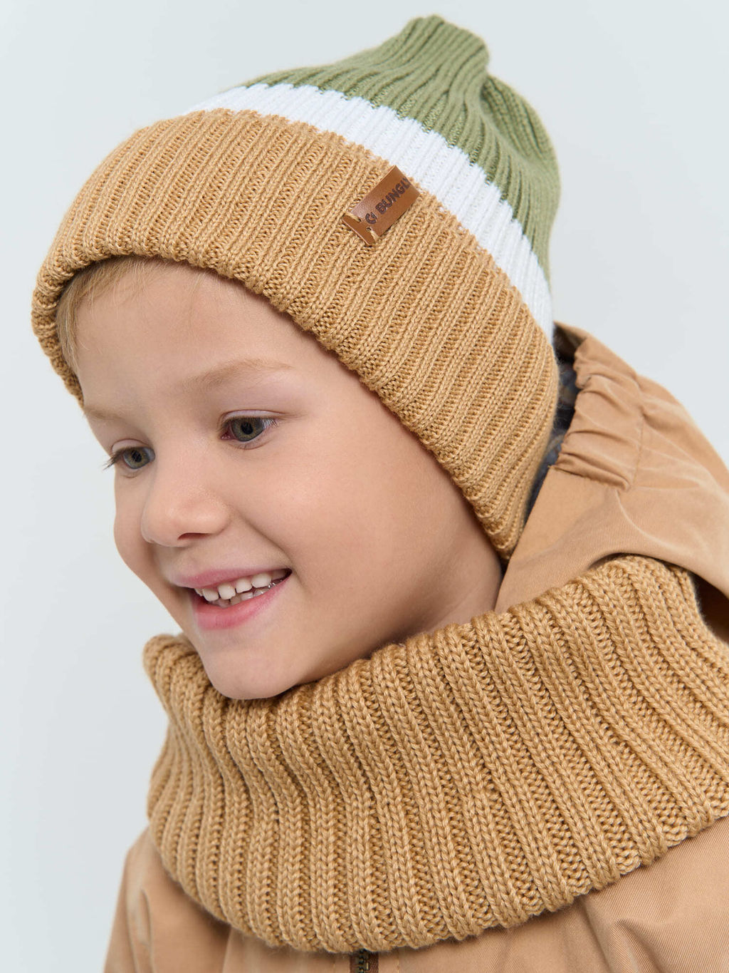 • Шапка тыква из смесовой шерсти однослойная Колор блок "Песок"